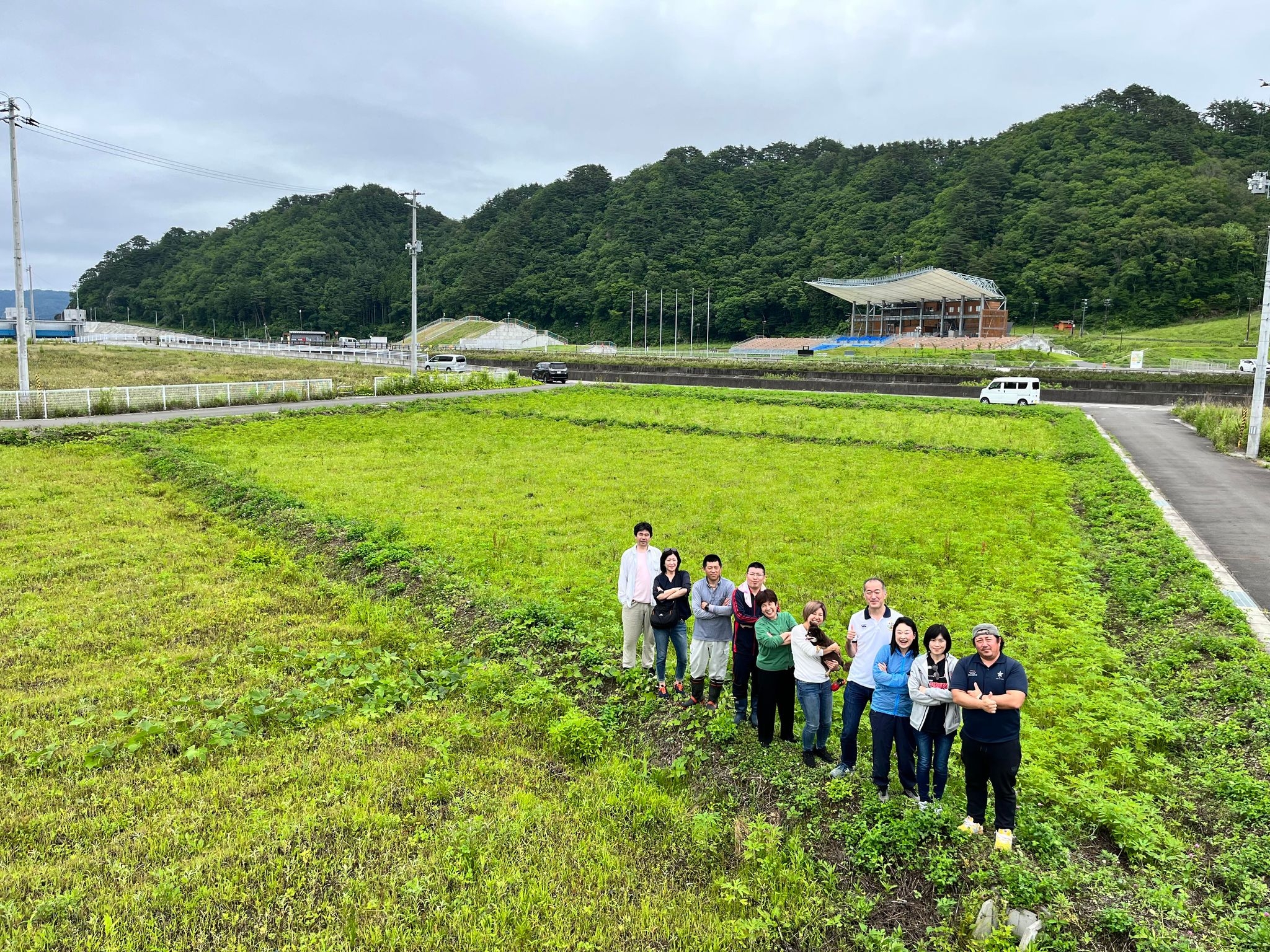 私たちの畑は、釜石鵜住居復興スタジアムの近くにあります。2019年スタジアムの一角にぶどうの苗を植え、震災復興の証しとして、世界中の人たちと繋がるためにスタートしました。コロナ禍を乗り越え、2023 年からはスタジアム前の畑で新たな挑戦を始めました。子どもも大人も集まって未来を語り合う、楽しい場所にしたいと願っています。